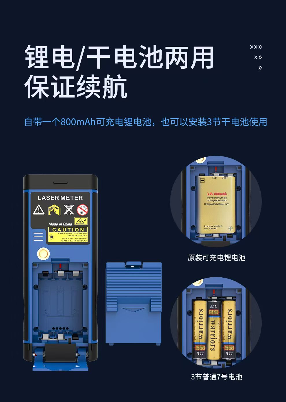 ④锂电池和干电池两种供电方式增强工作时长。